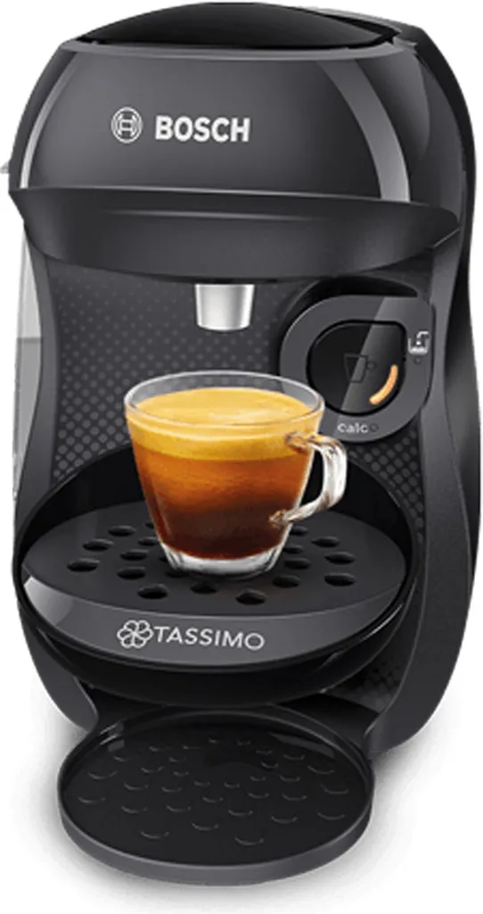Geliefert wird: Bosch SDA Heißgetränkeautomat Tassimo Happy TAS1002N real black, Verpackungseinheit: 1 Stück, EAN: 4242005265442