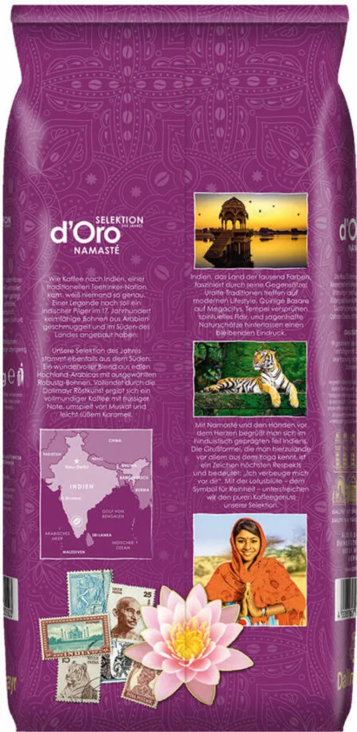 Indien, das Land der tausend Farben, fasziniert durch seine Gegensätze: Uralte Traditionen treffen auf modernen Lifestyle, quirlige Basare auf Megacitys und prachtvolle Tempel auf magische Landschaften. Ein Stück von diesem facettenreichen Kontinent haben unsere Kaffee-Experten durch die schonende Röstkunst vollendet und in die Tasse gebracht. Der Blend aus edlen Hochland-Arabicas und ausgewählten Robusta-Bohnen überrascht mit einem kontrastreichen Geschmacksprofil. Die Bohnen stammen aus dem Süden Indiens, sind vollmundig im Geschmack mit nussigen Aromen und einem Hauch Muskat und leicht süßem Karamell.