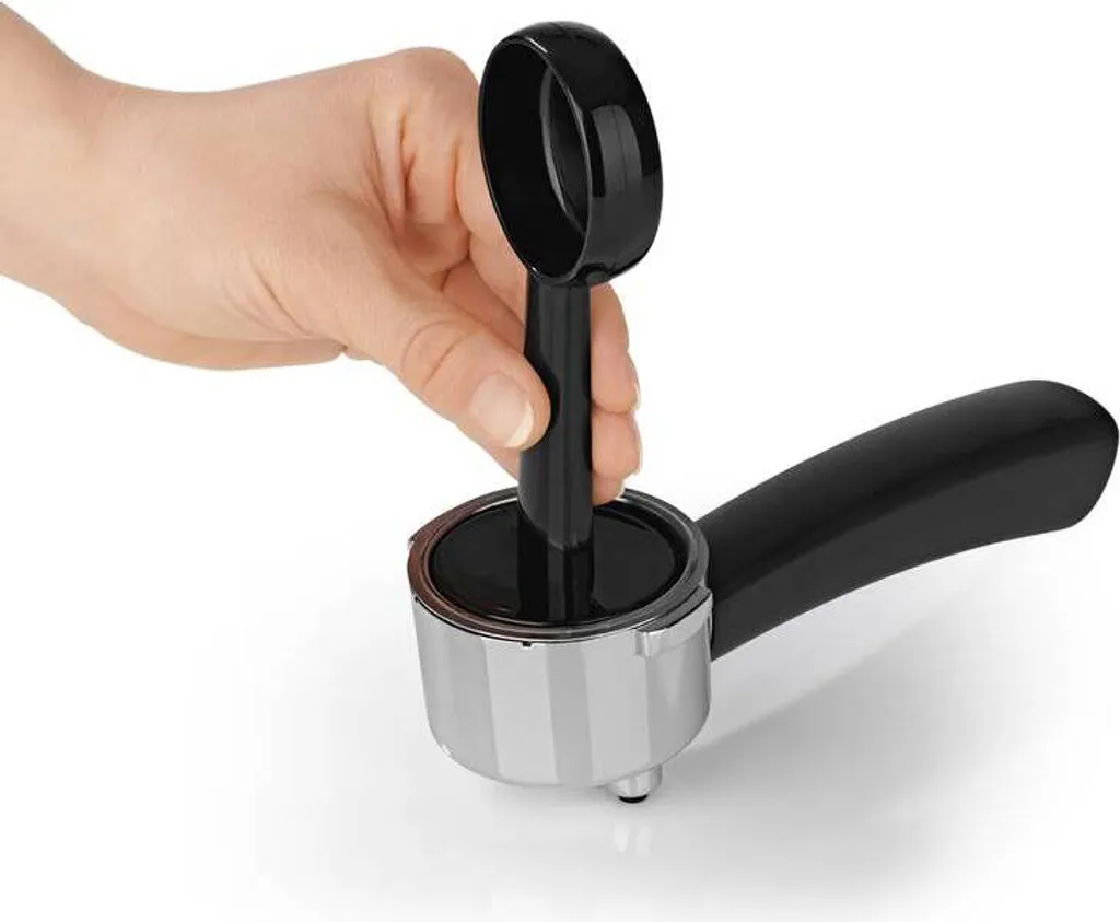 - Lieferumfang: Espressomaschine, Wassertank mit Deckel, Milchtank inkl. Abdeckung, Siebträger, Sieb klein/groß, Tropfschale, Dosierlöffel