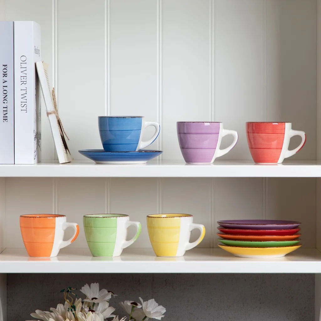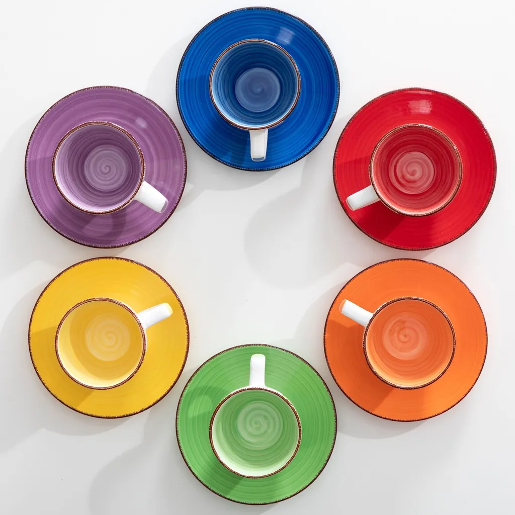 - Komplette Kollektionen. 12-teiliges BONITA Kaffeeservice Set im Strudel-Design besteht aus 6 Untertellern Ø14,4 cm und 6 Tassen Ø 8 cm, 180ml. Ideal für Cappuccino, Cafe, Milchcafe. Die einzigartige bunte Farbanstimmung errinnen sich einfach an bunten Himmel undangenehmen Urlaub!