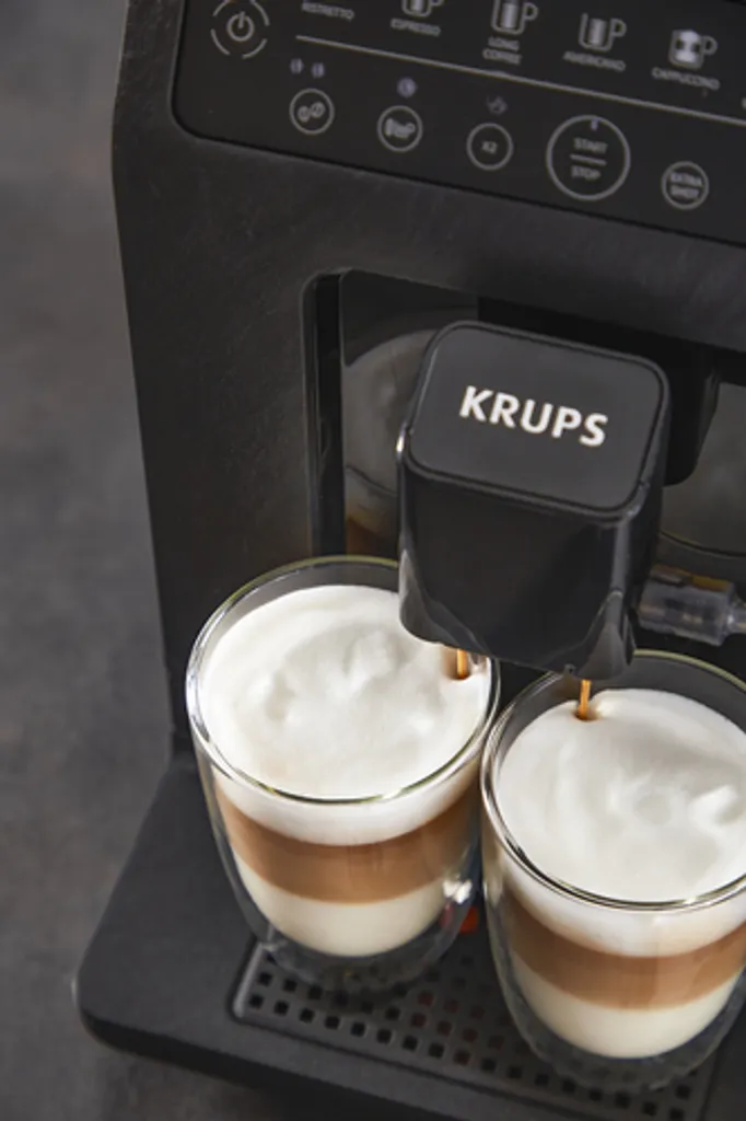 Entdecken Sie Krups Evidence ECOdesign, den ersten Espresso-Kaffeevollautomaten, der perfekten Kaffeegeschmack mit einem umweltfreundlichen Design vereint, das zu 62 % aus recyceltem Kunststoff besteht.* Die Quattro Force-Technologie optimiert jeden Schritt von der Bohne bis zur Tasse, um das Beste an Geschmack, Körper und Aroma des Kaffees herauszuholen. Brühen Sie eine oder zwei vollmundige Tassen Espresso auf einmal auf und verwenden Sie die One-Touch Cappuccino-Funktion, um auf Knopfdruck zwei köstliche Cappuccinos gleichzeitig zuzubereiten.