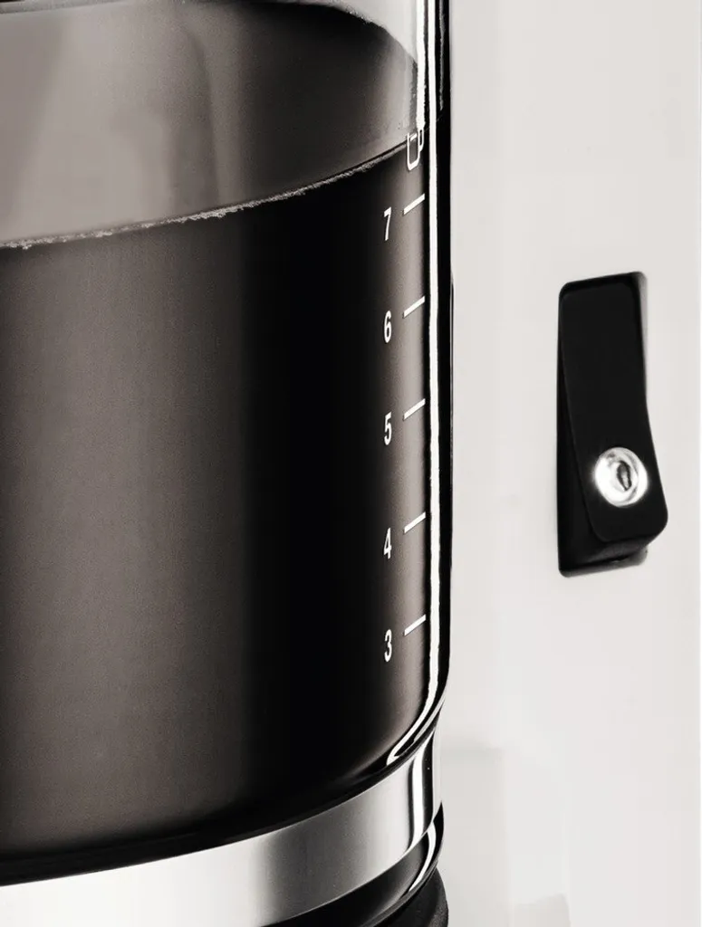 Heißbrühsystem, Schwenkfilter, Aromaverschlussdeckel, Wasserstandsanzeige mit Lupeneffekt