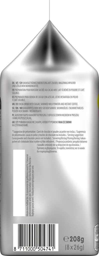 Einfach die Cappuccino-Choco T-Disc einlegen und in wenigen Augenblicken ist Dein köstlicher Kakao-Cappuccino fertig.
